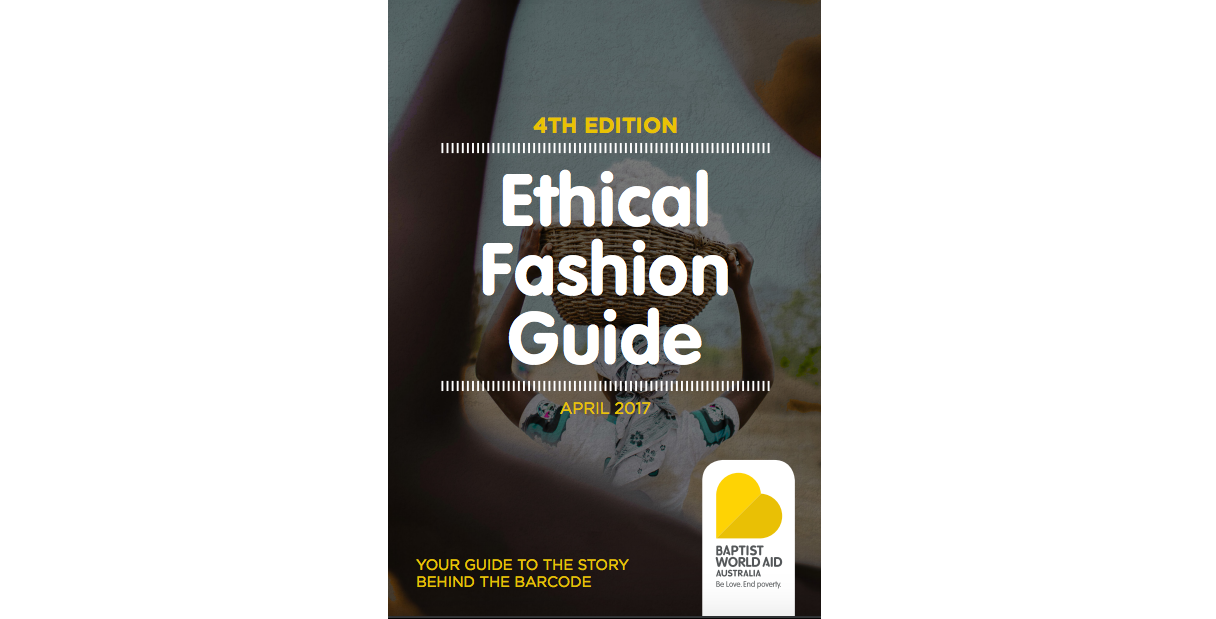 As well as this, every year Baptist World Aid put out the Ethical Fashion Guide where they rate clothing brands bought in Australia on their policies, knowledge of their suppliers, auditing and supply, and worker empowerment from A to F. (They also do an ethical electronics guide, but that's not what this post is about).